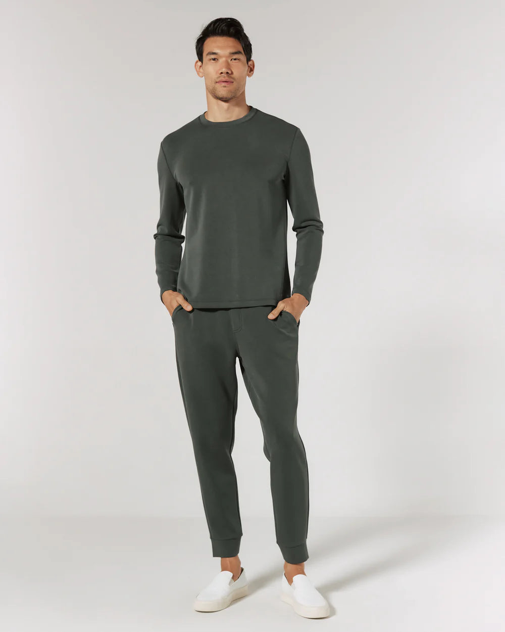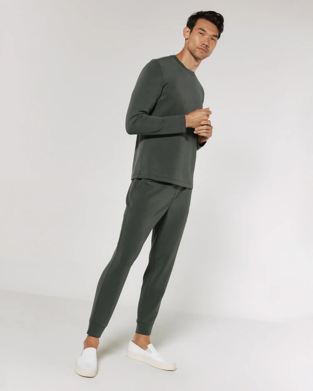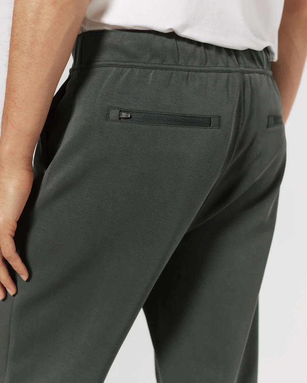 A contemporary jogger that features an elastic waist with drawstrings and back pockets with hidden zippers. Softer-than-ever and super comfortable, perfect for all-day wear.