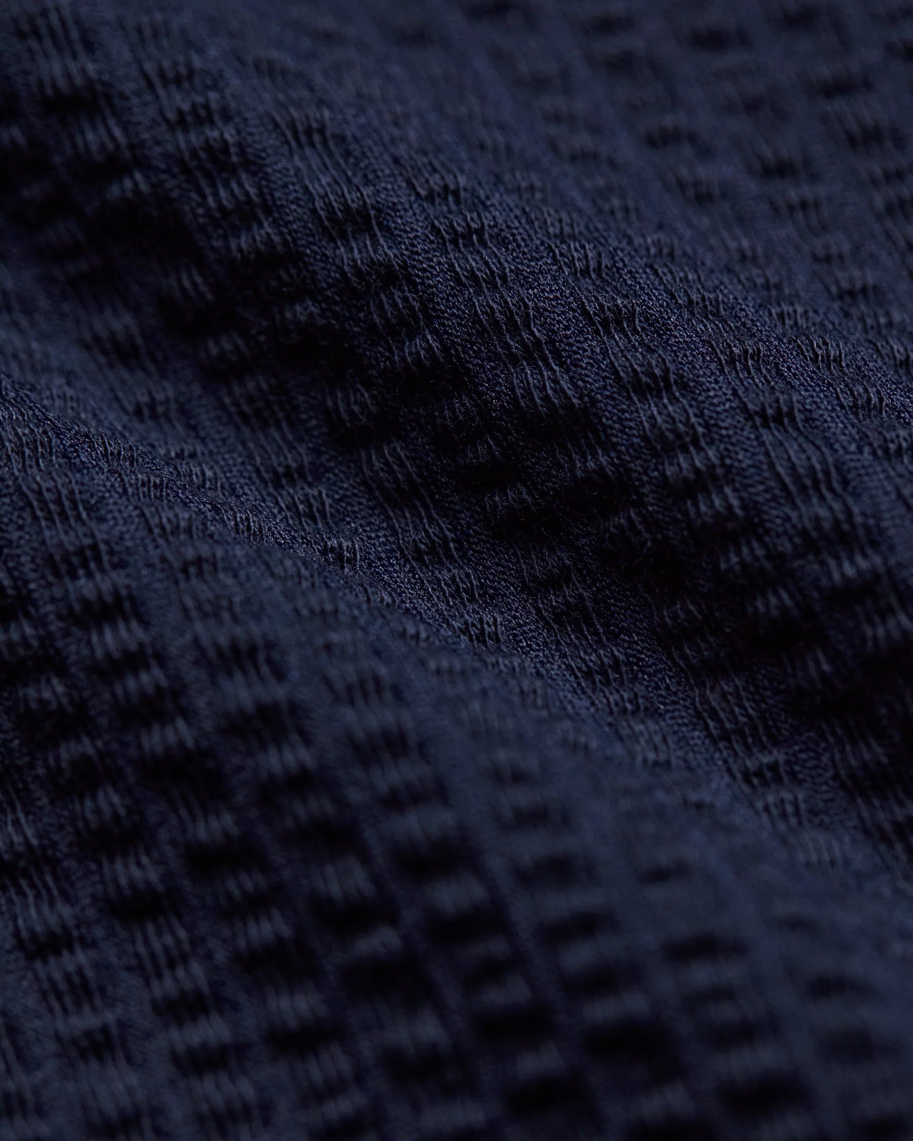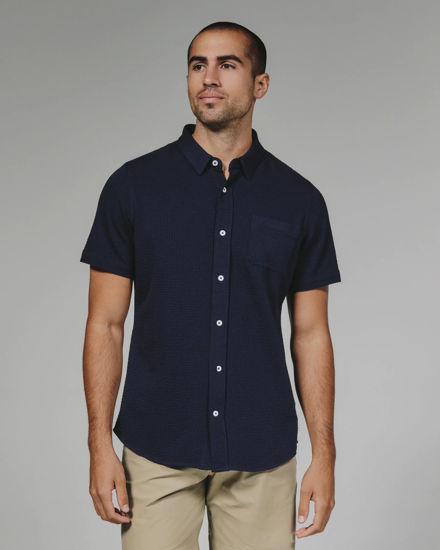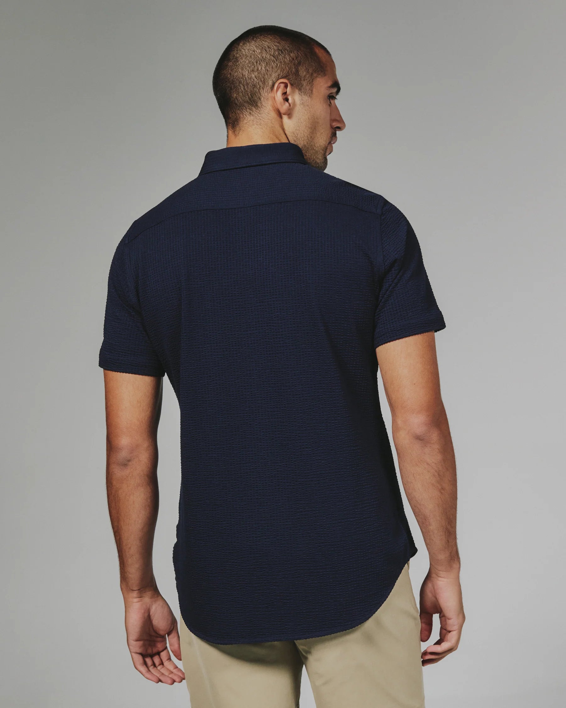A modern twist on the classic seersucker shirt. Crafted with a nylon fabric blend that allows a super soft hand-feel and incredible stretch. Cool to the touch, airy, and breathable — making it the perfect summer staple.