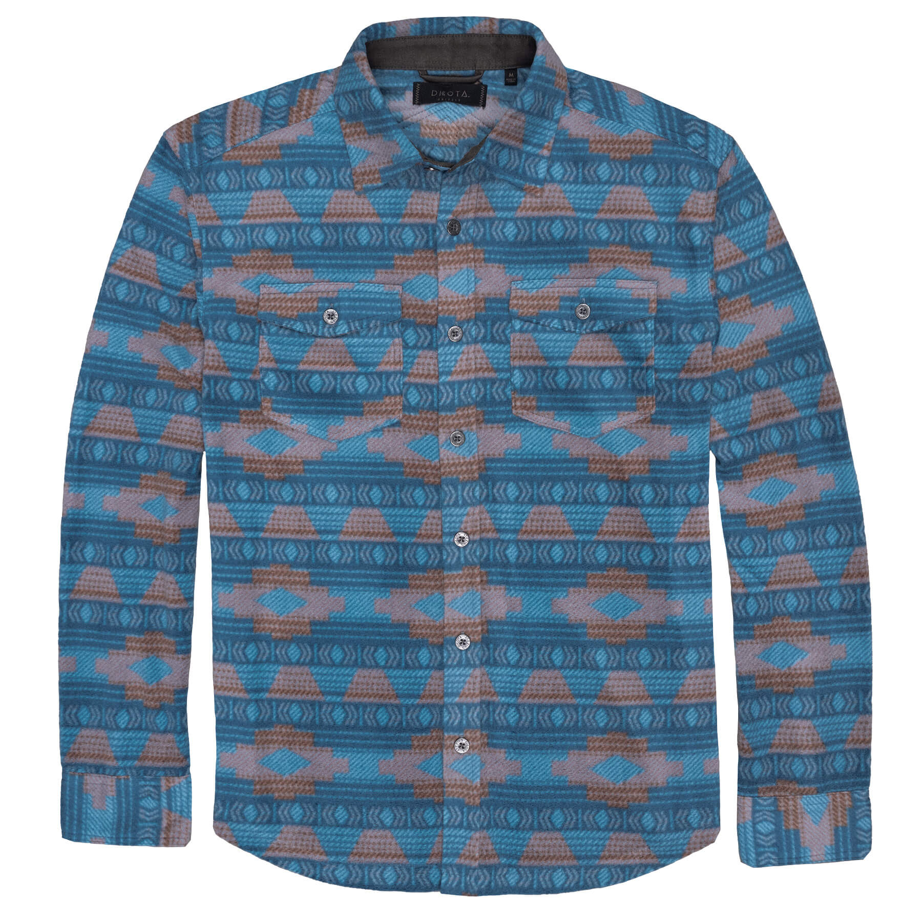 The Crockett brings a fresh take on southwest-inspired style with its bold tribal pattern and ultra-soft arctic fleece fabric. Designed for comfort and character, it’s finished with microsuede trim, signature metal buttons, and our distinctive cross-bow yoke—making it a standout piece in any DKOTA collection.