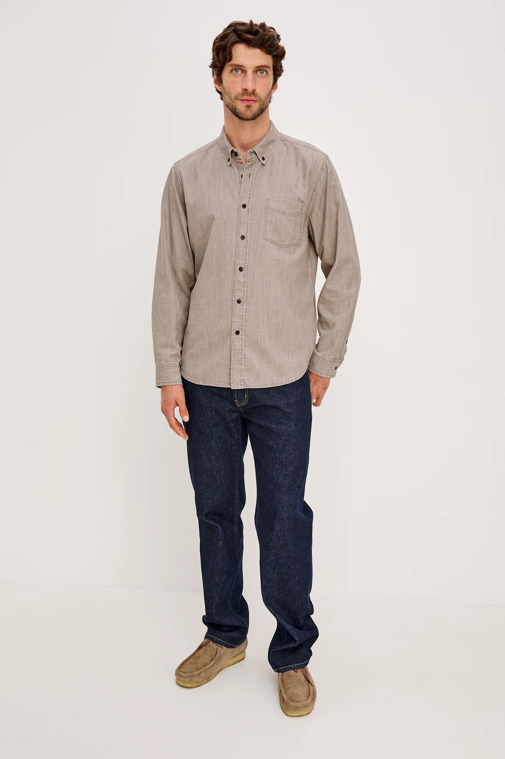 Refine your button-down rotation with the Tristan. The Tristan fabric is made from 100% Cotton rope-dye yarns which provides a two tone color effect on face and back of fabric. This slub fabric gives a rugged and vintage feel.